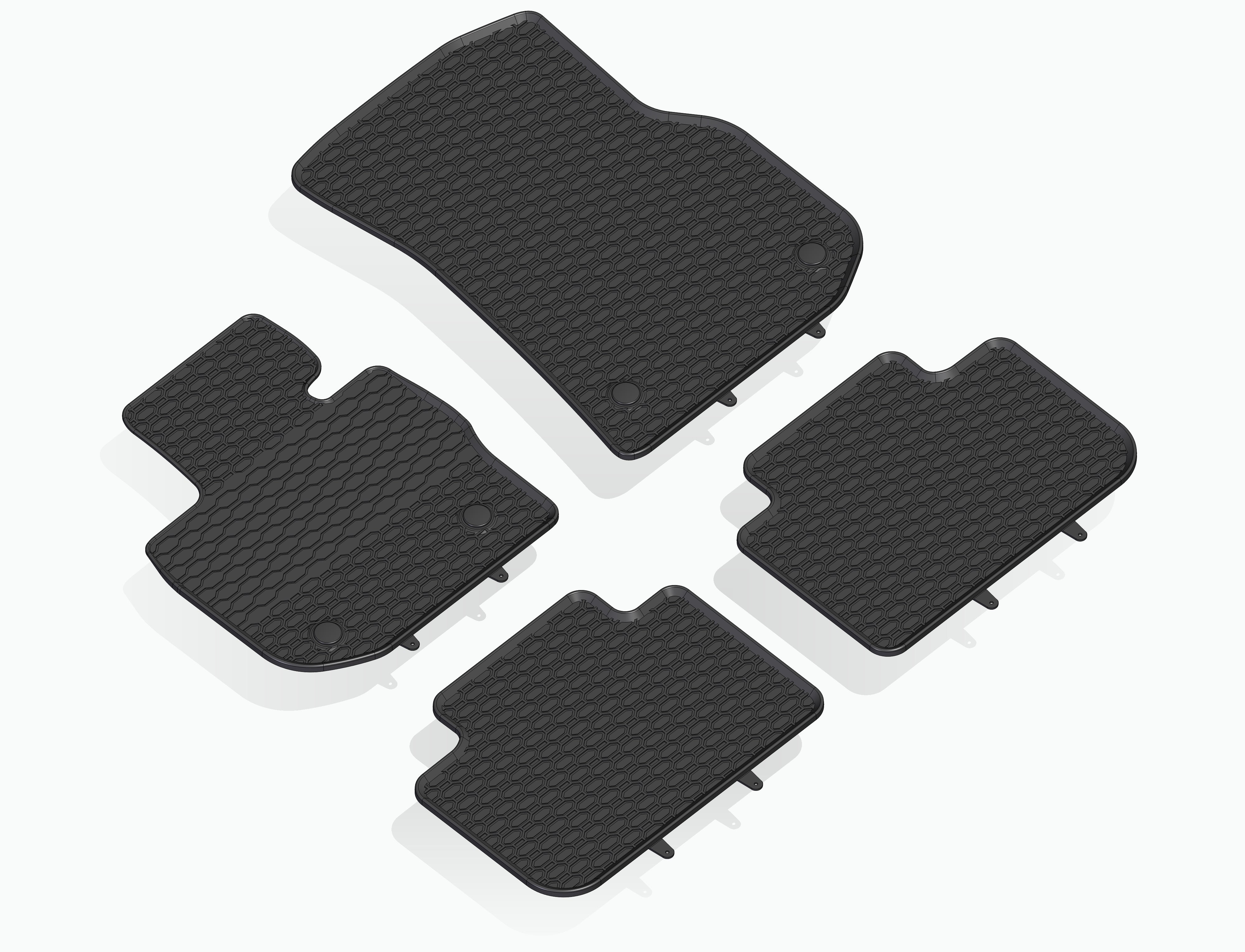 Die Fußmatten haben eine hochwertige Gummiqualität und garantieren dadurch eine hohe Lebensdauer. Durch die zusätzliche Verstärkung im Fußbereich sind die Autoteppiche ebenfalls langlebiger. Die Form der Fußmatten haben eine Honigwabenstruktur, welche die Bewegung von Wasser und Schmutz verhindern. Auf der Unterseite gibt es eine zusätzliche Antirutschbeschichtung, welche das Verrutschen während der Fahrt verhindern.