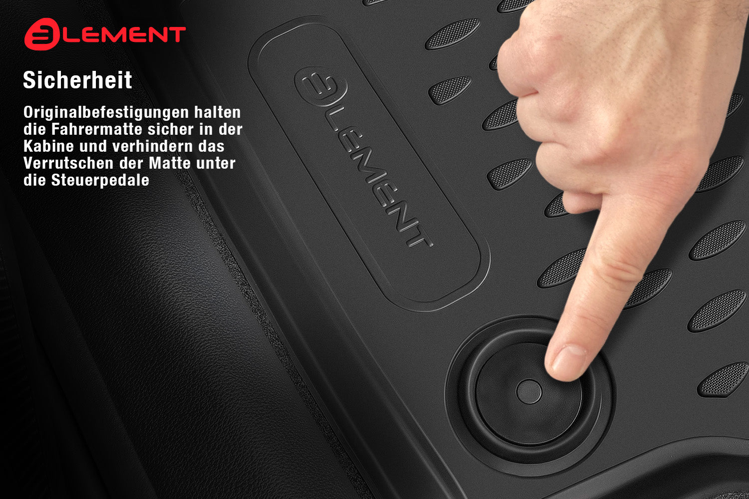 Die hochwertigen Gummi Fußmatten verfügen über spezielle abriebfeste Flachnoppen, die rutschhemmend wirken. Die Passform der Fußmatten ist speziell für Ihr Fahrzeug angepasst. Zusätzlich beinhalten die Matten schon spezielle Original Befestigungsknöpfe, wodurch die Installation sehr einfach ist.