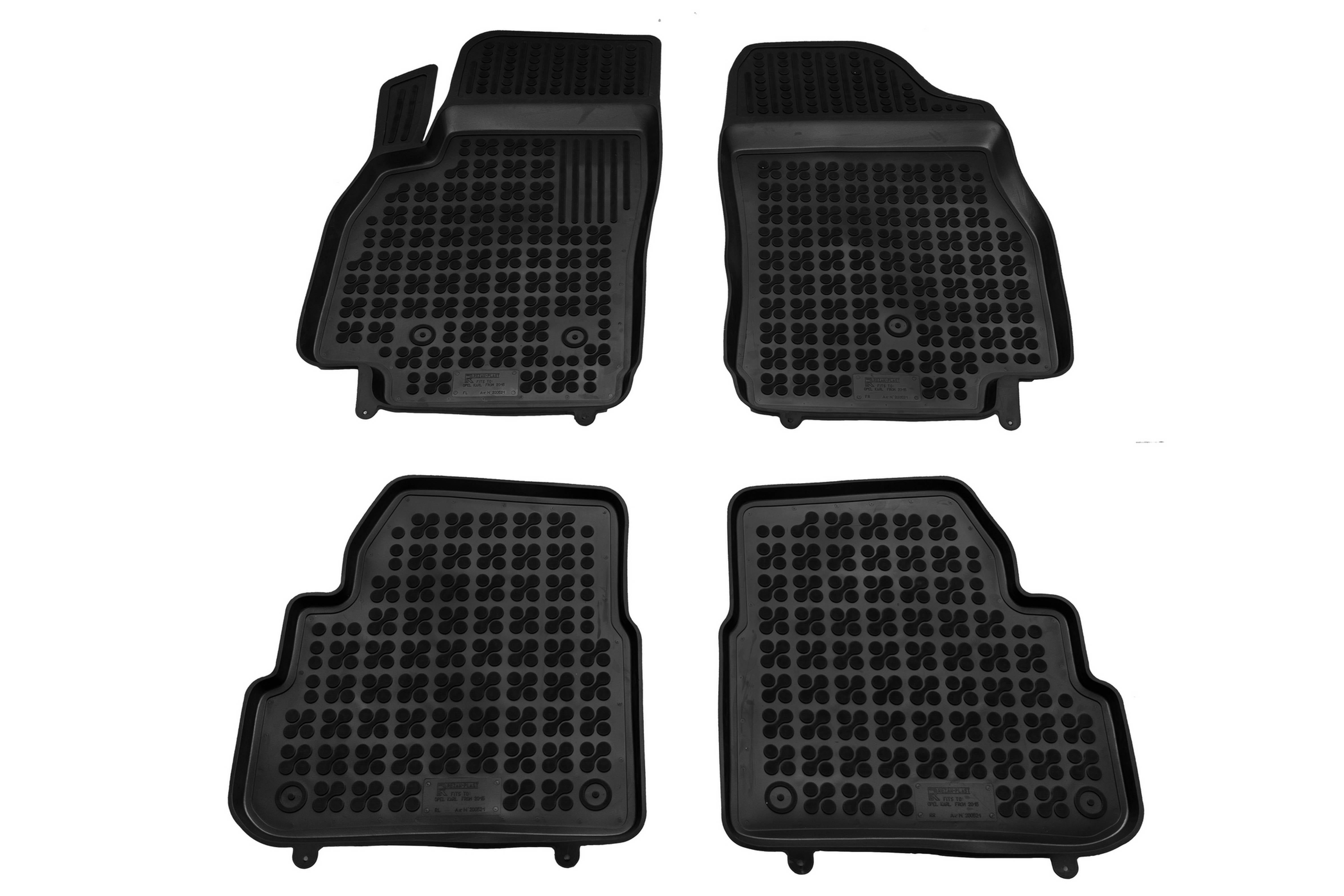 Die hochwertigen Gummi Fussmatten verfügen über eine extravagante Strukturoberfläche mit rutschhemmenden und abriebfesten Flachnoppen (Noppendurchmesser circa 18mm). Die perfekt zugeschnittene Form der Fußmatten sorgt für höchste Stabilität und einen sicheren Halt im Inneren.