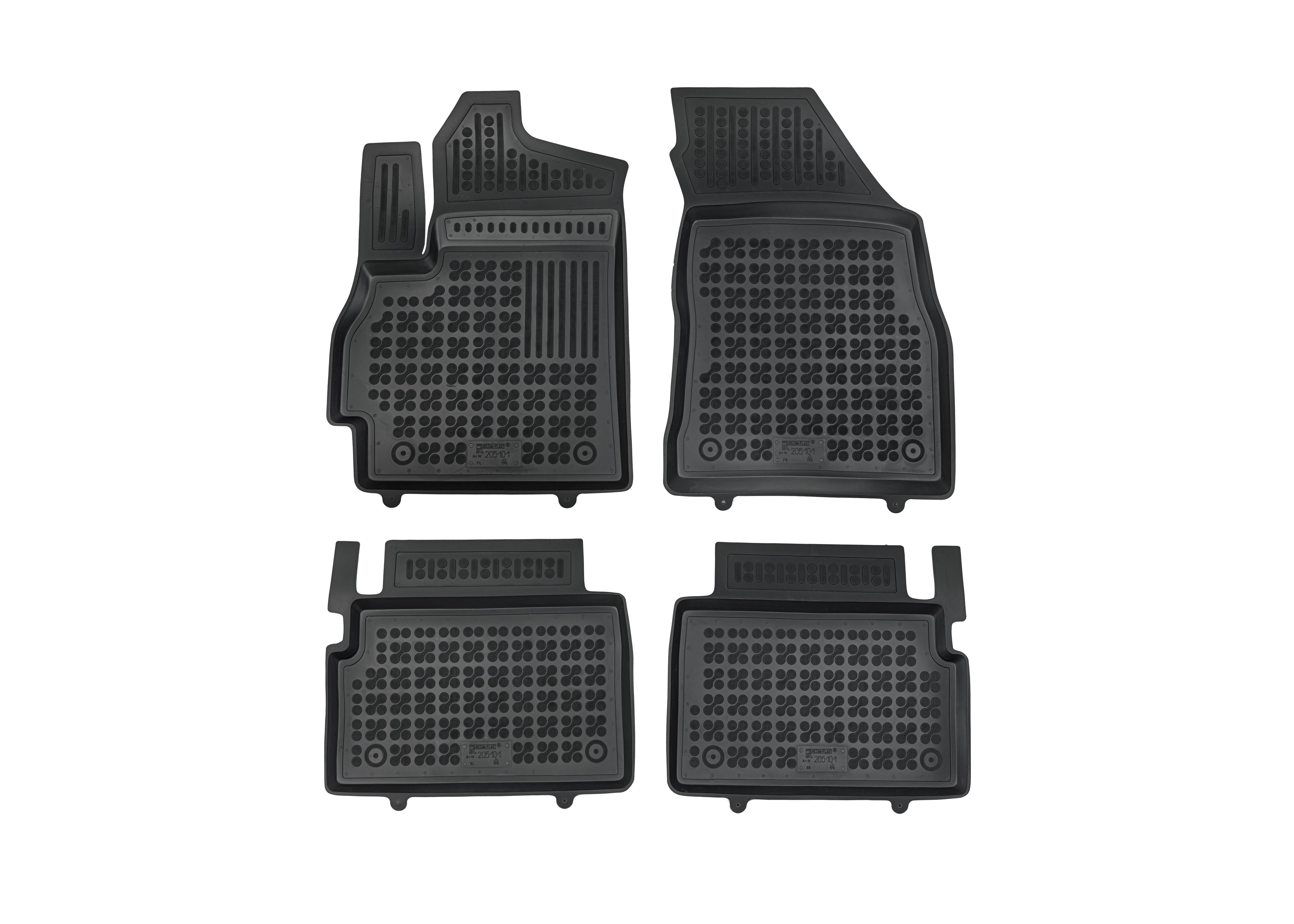 Die hochwertigen Gummi Fussmatten verfügen über eine extravagante Strukturoberfläche mit rutschhemmenden und abriebfesten Flachnoppen (Noppendurchmesser circa 18mm). Die perfekt zugeschnittene Form der Fußmatten sorgt für höchste Stabilität und einen sicheren Halt im Inneren.