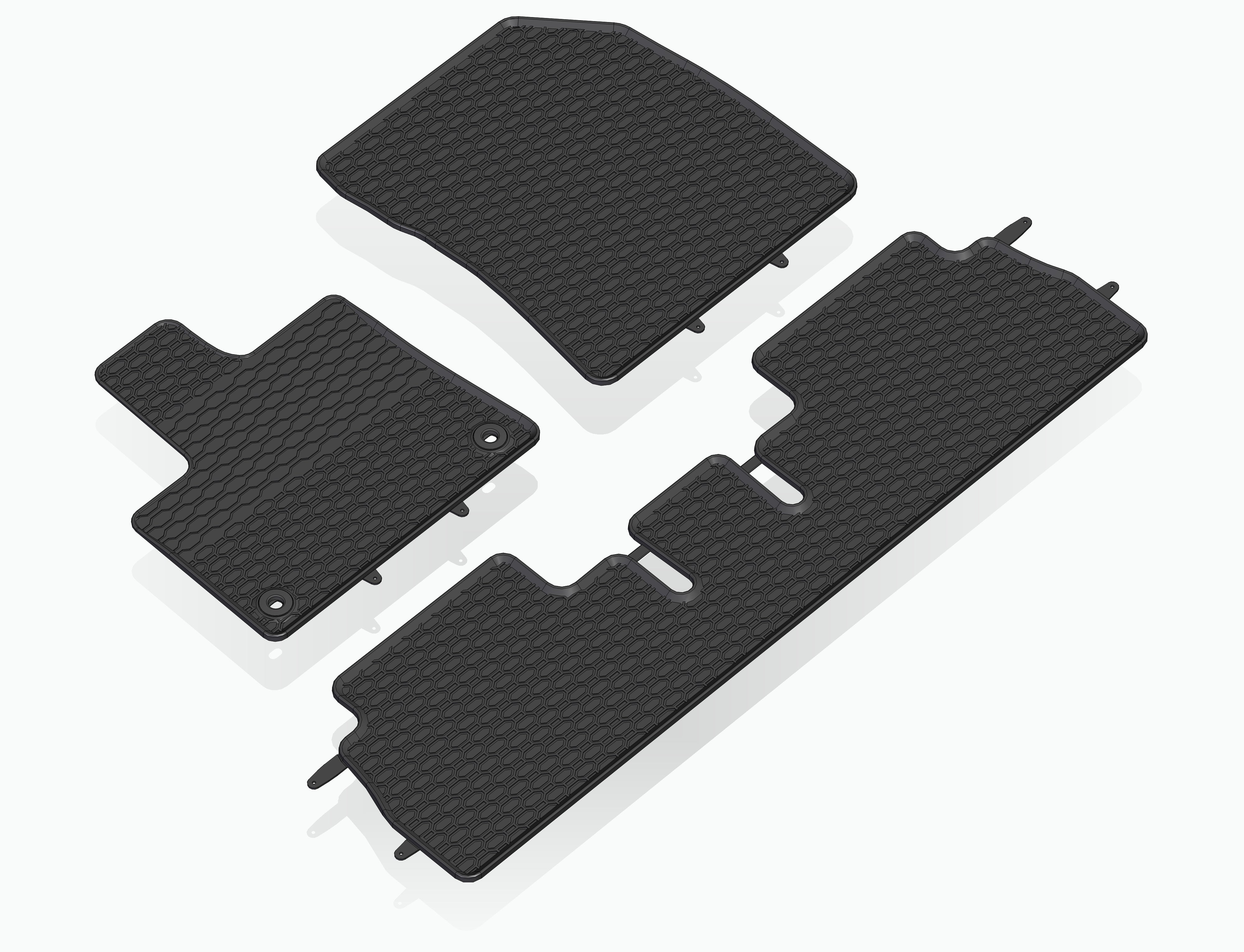 Die Fußmatten haben eine hochwertige Gummiqualität und garantieren dadurch eine hohe Lebensdauer. Durch die zusätzliche Verstärkung im Fußbereich sind die Autoteppiche ebenfalls langlebiger. Die Form der Fußmatten haben eine Honigwabenstruktur, welche die Bewegung von Wasser und Schmutz verhindern. Auf der Unterseite gibt es eine zusätzliche Antirutschbeschichtung, welche das Verrutschen während der Fahrt verhindern.