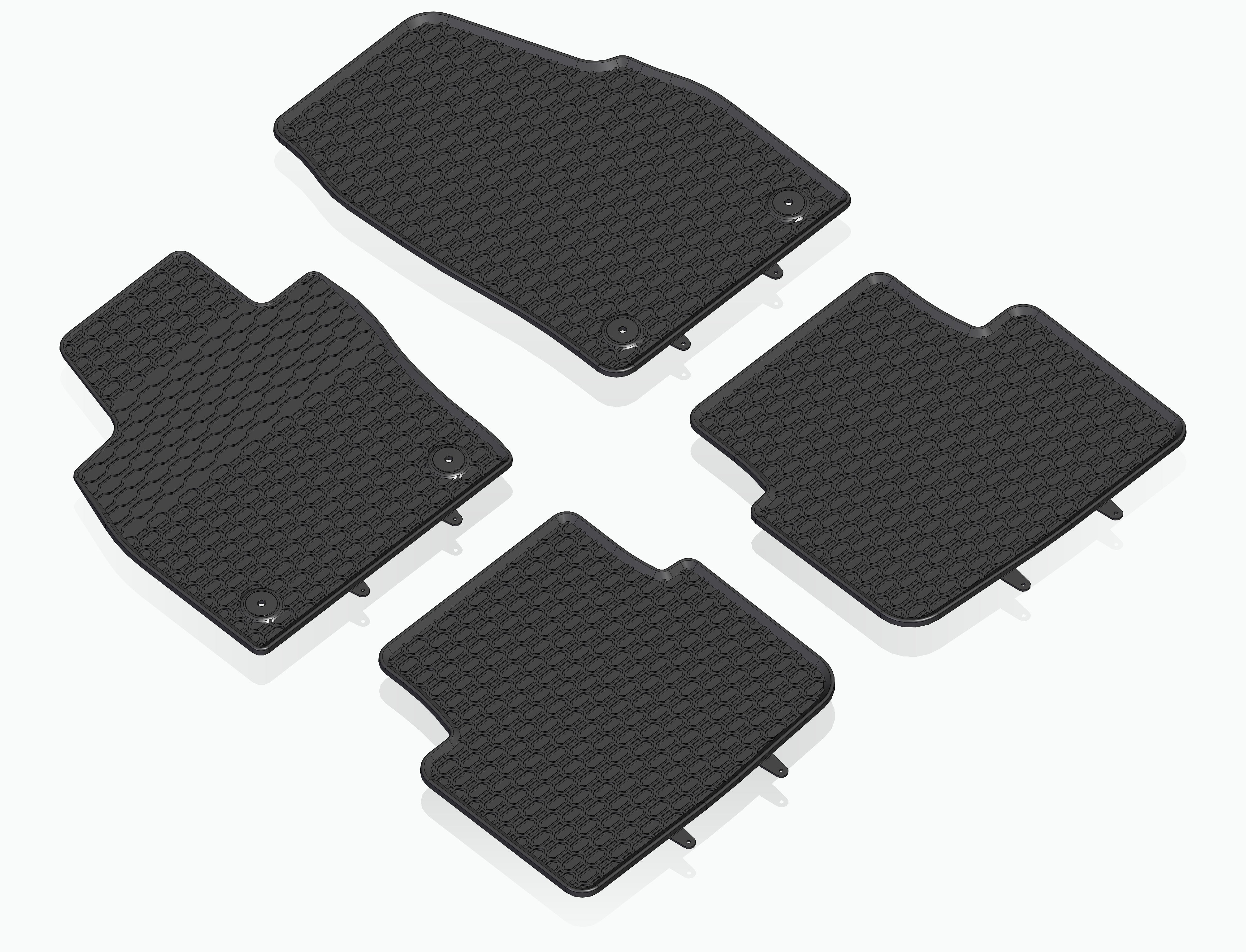 Die Fußmatten haben eine hochwertige Gummiqualität und garantieren dadurch eine hohe Lebensdauer. Durch die zusätzliche Verstärkung im Fußbereich sind die Autoteppiche ebenfalls langlebiger. Die Form der Fußmatten haben eine Honigwabenstruktur, welche die Bewegung von Wasser und Schmutz verhindern. Auf der Unterseite gibt es eine zusätzliche Antirutschbeschichtung, welche das Verrutschen während der Fahrt verhindern.