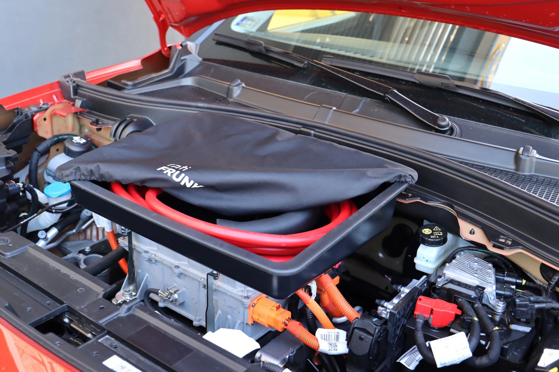 Nutzen Sie den bislang ungenutzten Platz unter der Motorhaube optimal aus! Dieser speziell entwickelte Frunk (Front-Kofferraum) schafft praktischen Stauraum im vorderen Bereich Ihres Elektrofahrzeugs.