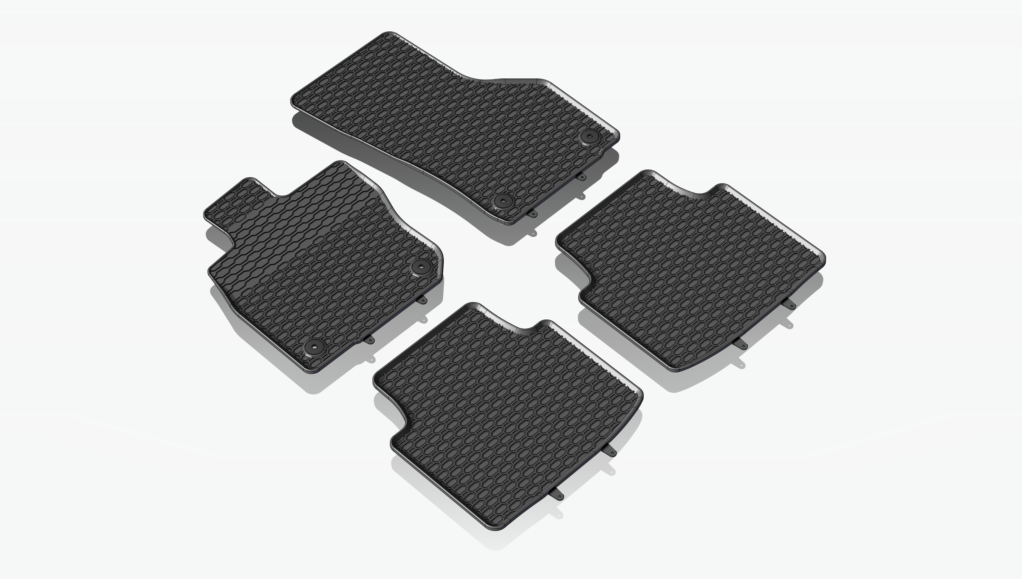 Die Fußmatten haben eine hochwertige Gummiqualität und garantieren dadurch eine hohe Lebensdauer. Durch die zusätzliche Verstärkung im Fußbereich sind die Autoteppiche ebenfalls langlebiger. Die Form der Fußmatten haben eine Honigwabenstruktur, welche die Bewegung von Wasser und Schmutz verhindern. Auf der Unterseite gibt es eine zusätzliche Antirutschbeschichtung, welche das Verrutschen während der Fahrt verhindern.