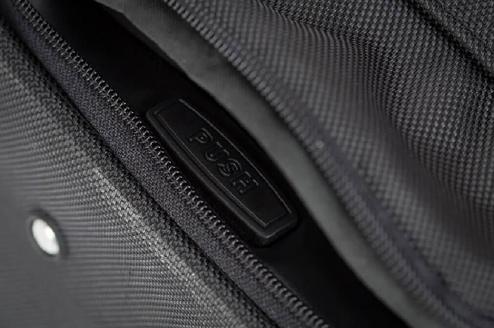 Der asymmetrisch geschnittene Rand der KJUST-Reisetaschen sorgt dafür, dass die Tasche genau an der Rücksitzbank des Autos anliegt und den Gepäckraum voll ausnutzt.